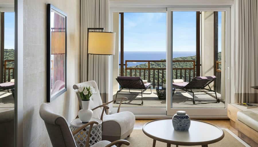 Большой выбор вариантов размещения с премиальным дизайном: светлые тона, натуральные материалы, панорамные окна с видом на море. Все создано для того, чтобы вы чувствовали себя свободно. Здесь есть улучшенные номера и делюксы (45–55 м²) с частичным или полным видом на море. Номер «Форест Рум» (55 м²) — уединенное место на природе, подходит для тех, кто ищет покой и тишину. Есть семейные номера (65–95 м²) и виллы с видом на море и всем необходимым для комфортного отдыха: джакузи на террасах, кофемашинами, быстрым вайфаем.