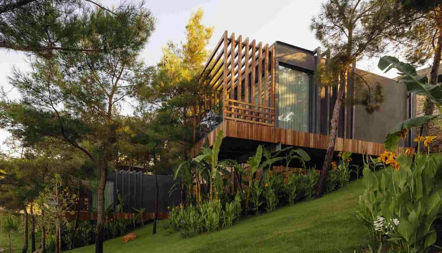 Архитектура интегрирована в окружающий ландшафт и создает ощущение полной гармонии с природой. Пространства спроектированы так, чтобы гость чувствовал уединение и свободу: открытая планировка, мягкий свет, комфортные зоны для отдыха и работы.