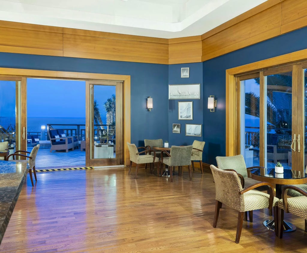 Самое замечательное — 28-метровый инфинити-бассейн с видом на залив. Рядом находится приватный пляж с ВИП-кабанами и клуб под открытым небом, где регулярно проходят вечеринки с участием артистов и диджеев международного уровня.