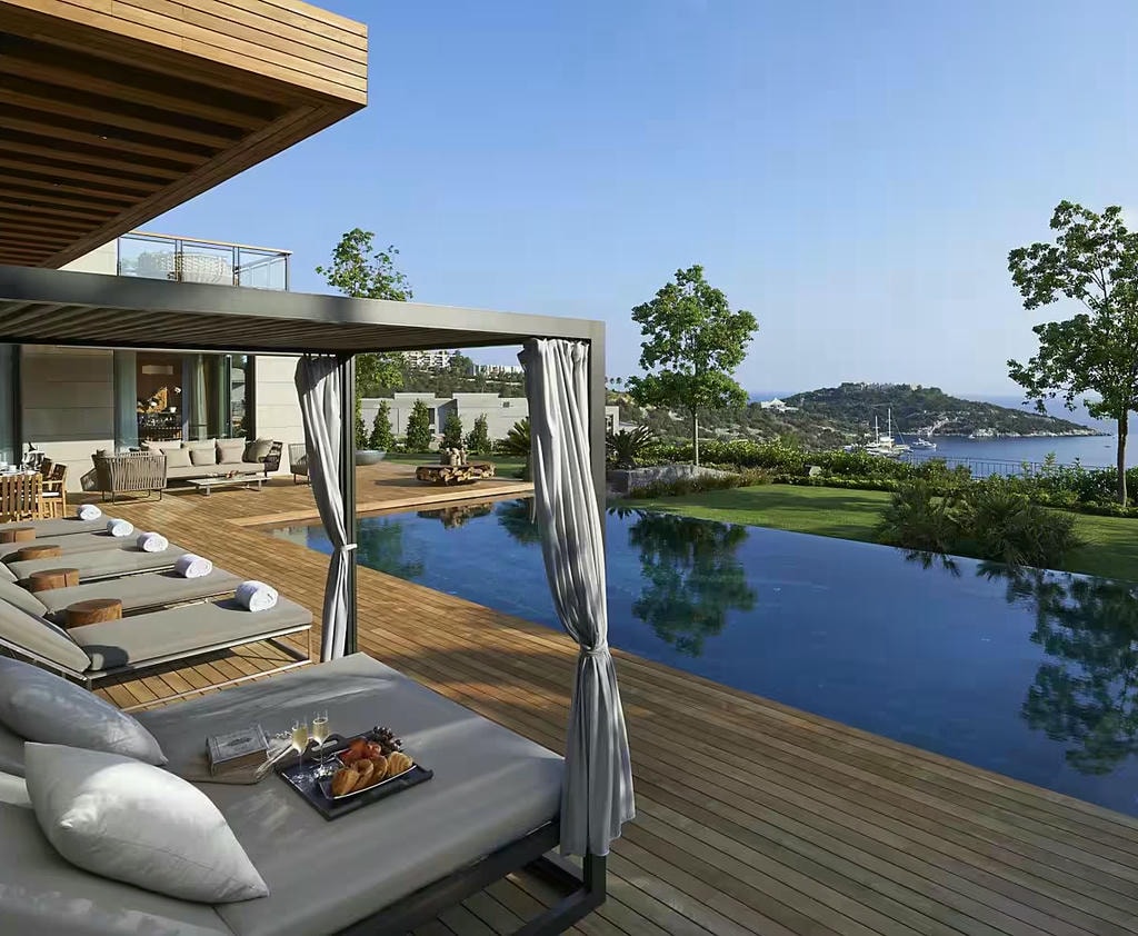 Современный отель на побережье залива Демирбюкю, который органично вписывается в ландшафт Эгейского побережья. Считается одной из самых модных туристических локаций Бодрума, подходит для семей и ценителей эстетики. Это стильный курорт в духе архитектурного минимализма с продуманной инфраструктурой и ощущением жизни «как у местных», но в премиальном исполнении.