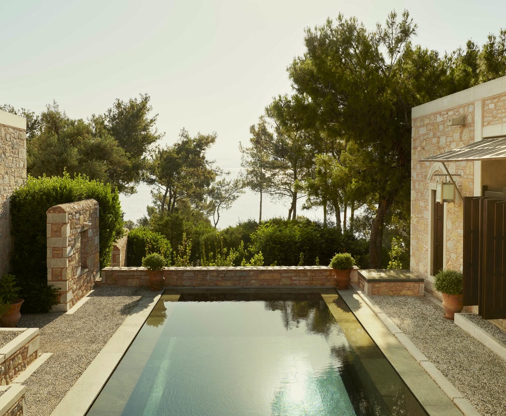 Фишка: частные павильоны с бассейнами, расположенные на склонах среди оливковых рощ.
