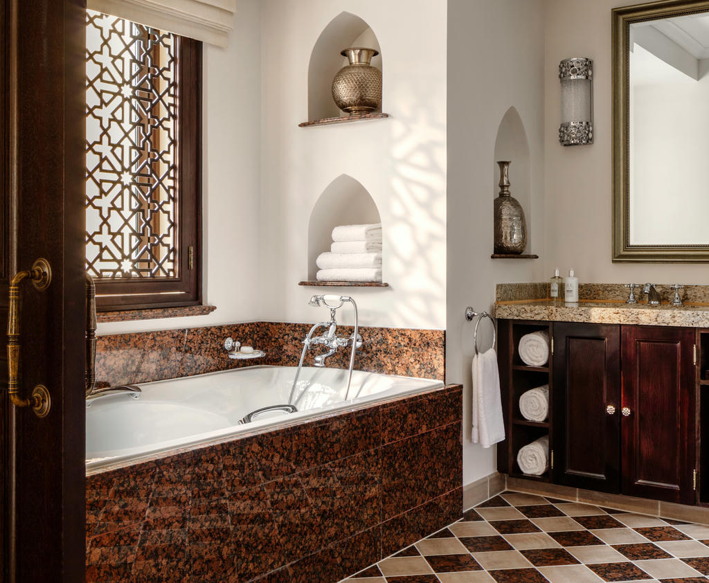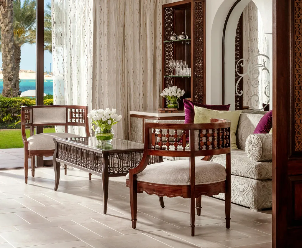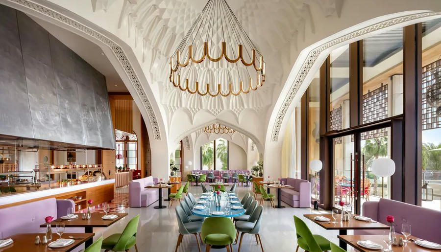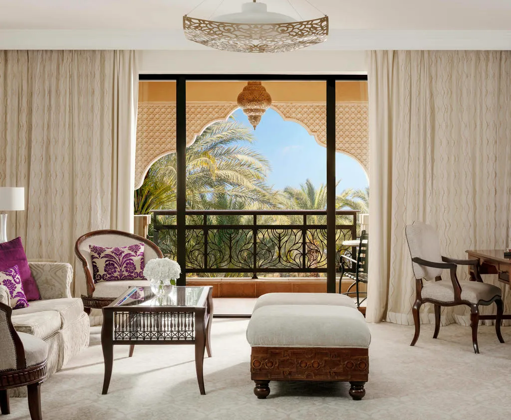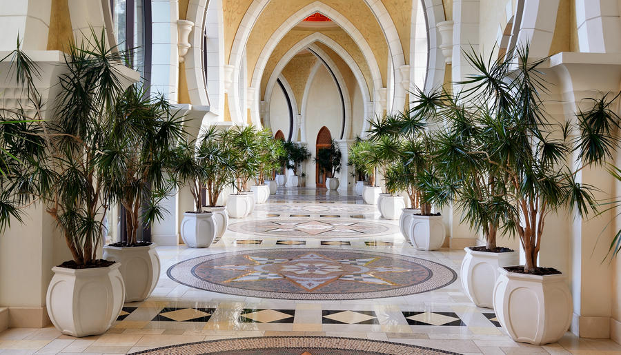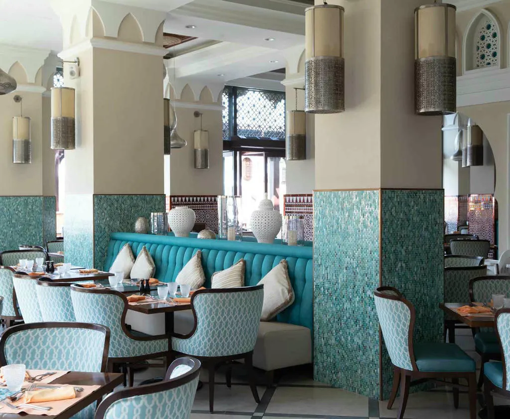 Этот отель со своими арками, фонтанами, мозаикой и садами, утопающими в зелени, как будто вышел из легенд «Тысячи и одной ночи». «Уан-энд-Онли Роял Мираж» — курорт в классическом арабском стиле, растянувшийся вдоль километрового частного пляжа. Здесь нет суеты, а архитектура и ландшафт работают как антистресс. Это место подходит для размеренного отдыха, медленных прогулок и романтических вечеров.