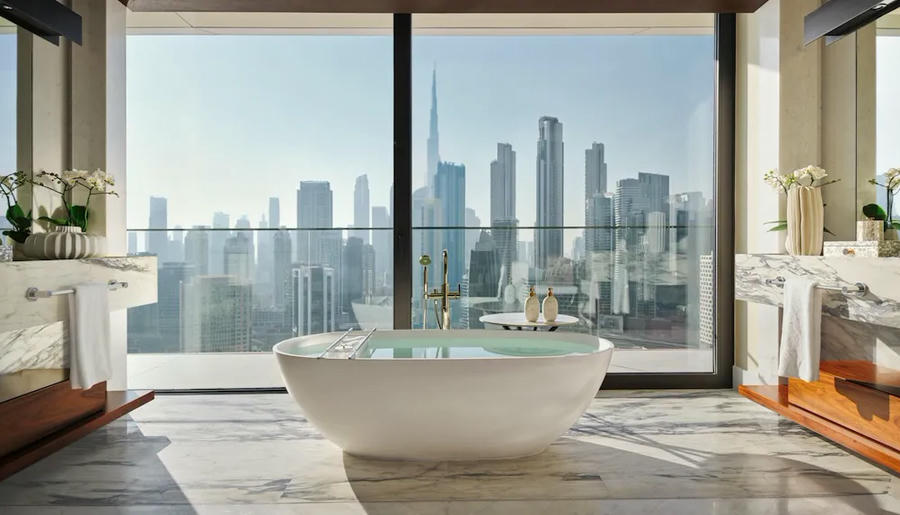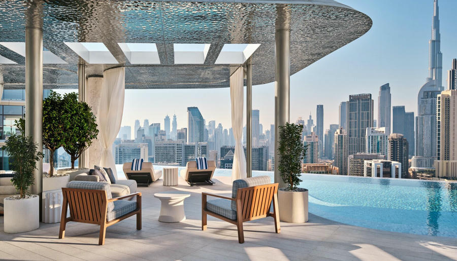 Отель, открывшийся в 2024 году в районе Бизнес-Бэй, уже занял 23-е место в списке «Ворлдс 50 Бэст Хотелс». Интересен элегантным дизайном, изысканными ресторанами и первым в регионе «Диор-спа». Архитектура отеля передает атмосферу современного европейского гранд-отеля с ближневосточной душой. Здесь встречаются английская сдержанность, итальянская легкость и восточная щедрость — все это превращается в исключительный, продуманный до мелочей сервис. Подходит для тех, кто ищет спокойную роскошь в центре города.