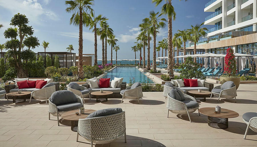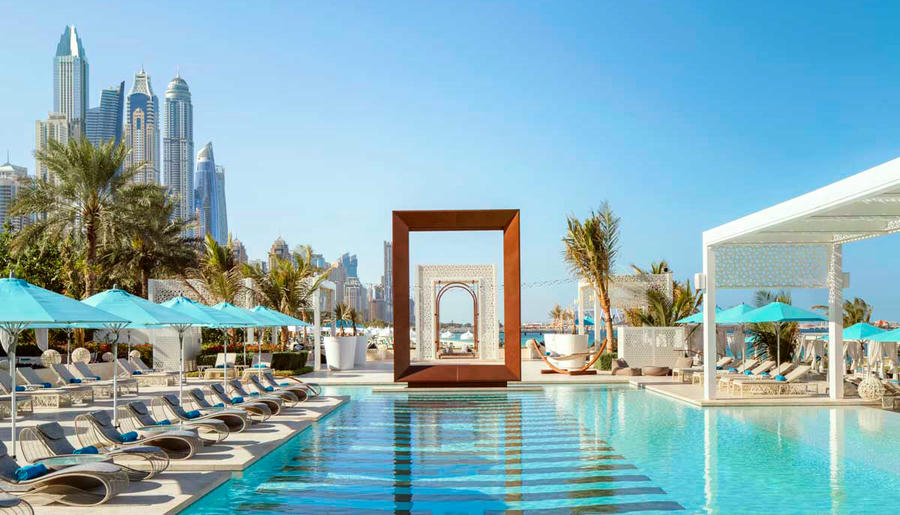 Фишка: ультрасовременный курорт с видом на «Бурдж Аль-Араб», оформленный в морской эстетике, с клубной атмосферой и частным пляжем.