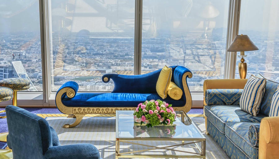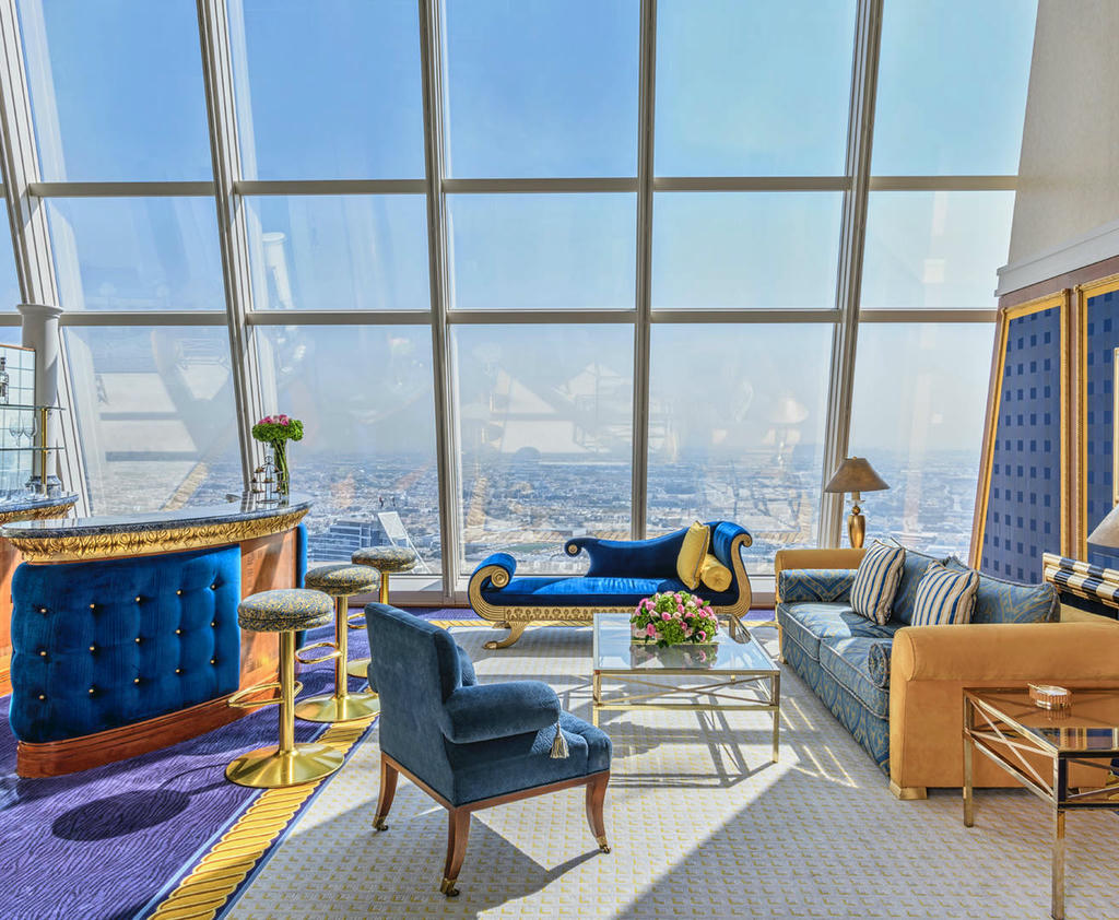Гости отеля получают доступ к частному пляжу, спа-центру «Талис» с массажными павильонами на высоте 150 метров и термальной зоной с видом на море. В распоряжении гостей бассейны, фитнес-студия, персональные тренировки, ВИП-доступ в аквапарк «Вайлд Вади» и прогулки на частной яхте. Для полного релакса отель предлагает королевские хаммамы и коллекцию эксклюзивных уходов от ведущих мировых брендов. Здесь можно организовать шопинг в бутиках с закрытым обслуживанием, вертолетные туры по Дубаю и романтические ужины на крыше отеля.