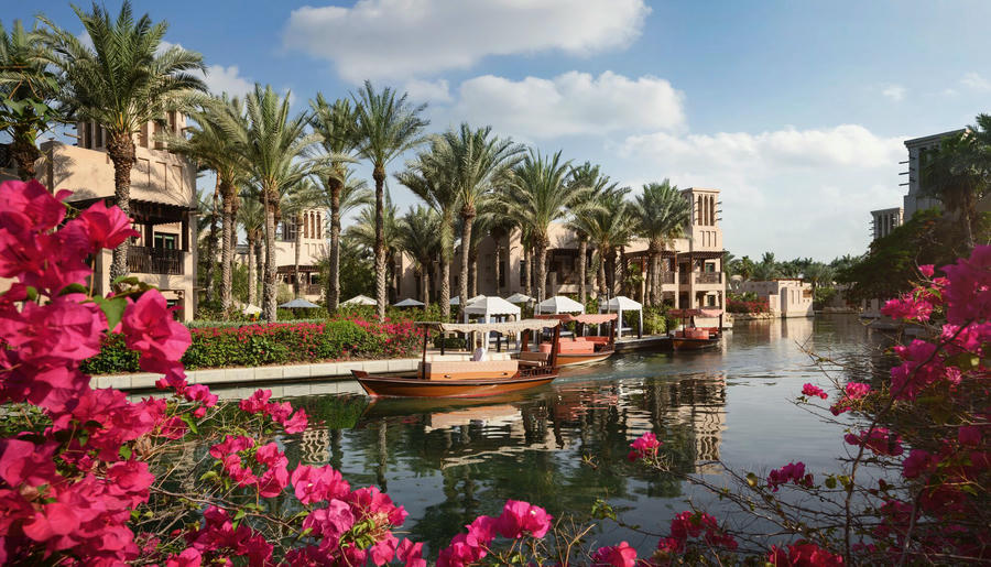 «Мадинат Джумейра» — это не просто курорт, а целый комплекс внутри Дубая, построенный в стиле старинного арабского города. В него входят отели «Аль-Каср», «Аль-Насим», «Мина Аль-Салам», «Дар Аль-Масиаф» и 25 ресторанов. Узкие водные каналы, по которым гостей развозят традиционные деревянные лодки абра, сады, тихие дворики и пляжи длиной в два километра создают ощущение путешествия во времени. Здесь за восточной архитектурой таится комфорт, достойным самых требовательных гостей. Это один из самых атмосферных и универсальных курортов в Дубае.
