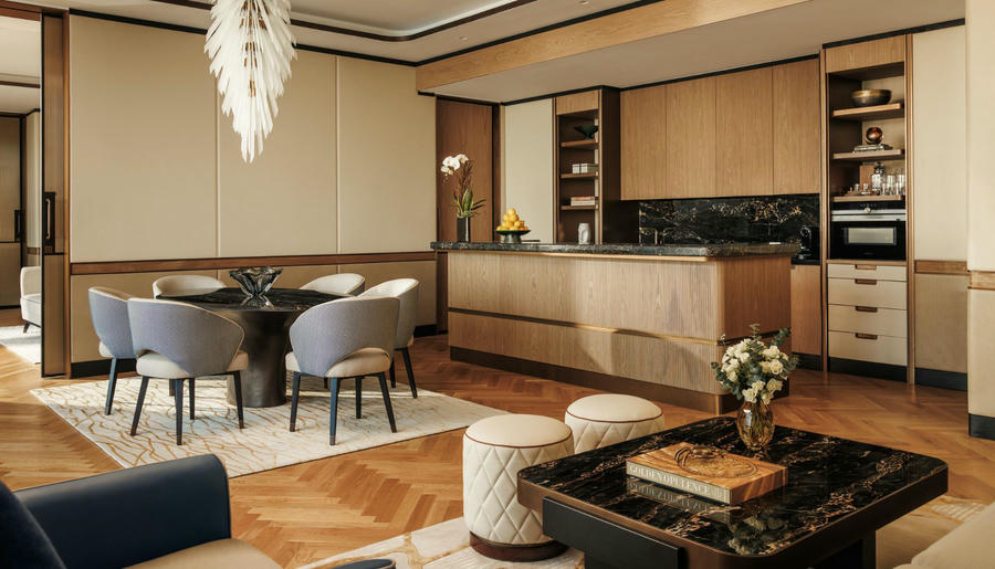 Гостям доступны просторные люксы с отдельными гостиными и балконами, а также 82 частные резиденции с одной, двумя или тремя спальнями, четырехметровыми потолками, отдельными кухнями и просторными террасами для созерцания живописных ландшафтов.