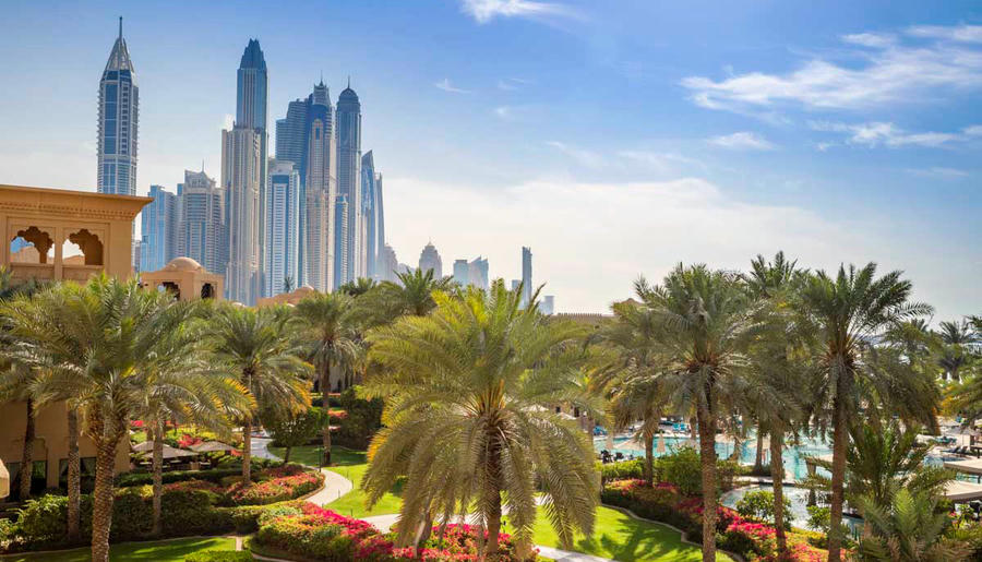 Фишка: архитектура в стиле марокканского дворца, 65 акров тенистых садов и один из самых уединенных пляжей в Дубае.