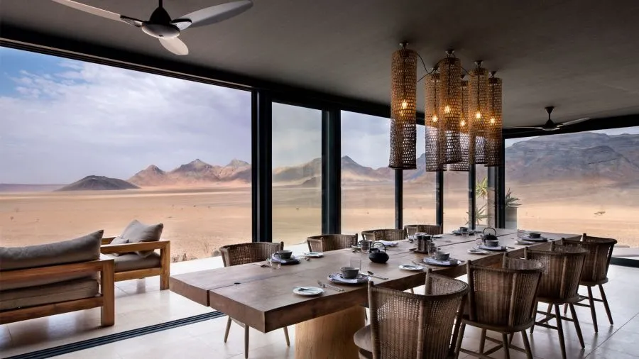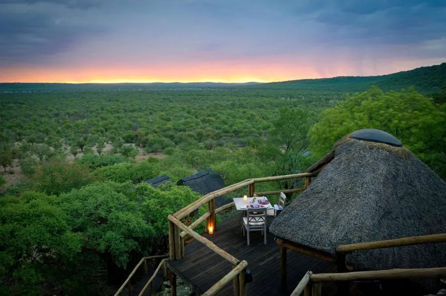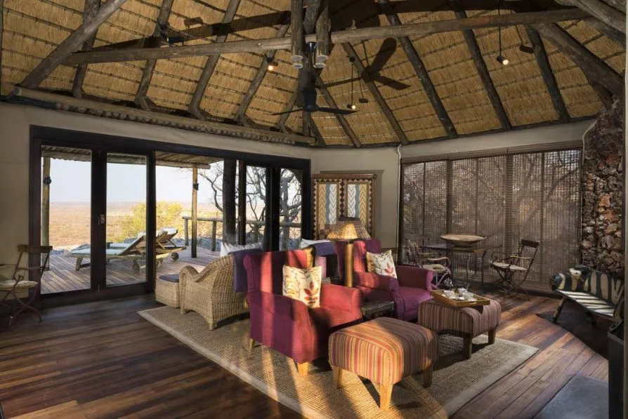 Из столовой и гостиной открывается отличный вид на долину и водопой. Несомненно, это любимое место гостей, где можно пообщаться и насладиться вкусной едой под звездным небом.