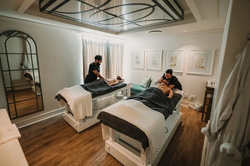 - индивидуальные парные, тропические душевые и лаундж для отдыха после процедур;