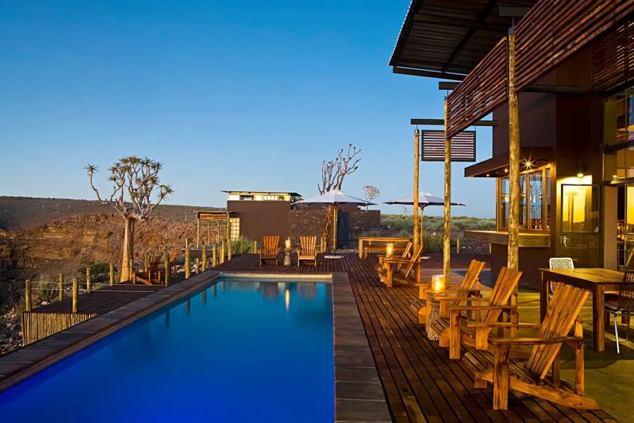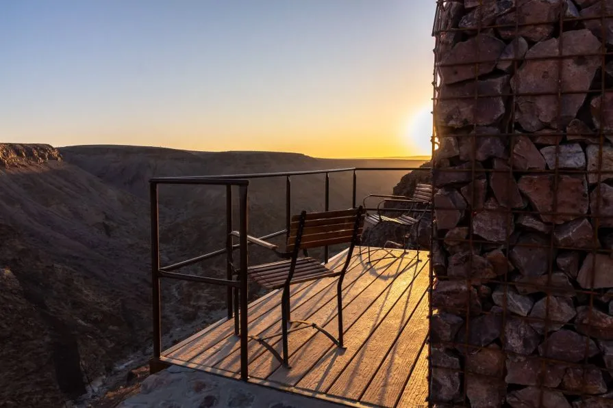 Уникальный ландшафт вдохновил владельцев построить лодж в современном стиле на самом краю легендарного каньона Фиш Ривер — самого большого в Африке. Больше него только Гранд Каньон. Панорамный вид открывается из всех шале и главного административного здания с бассейном и рестораном. После затяжных дождей, каньон заполняется водой, а напротив лоджа появляется водопад.