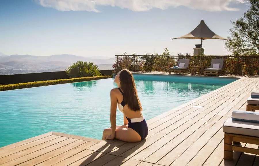 В солнечную погоду можно позагорать на террасе у 22-х метрового бассейна или сходить в тренажерный зал, из окон которого открывается пейзаж на Столовую гору.
