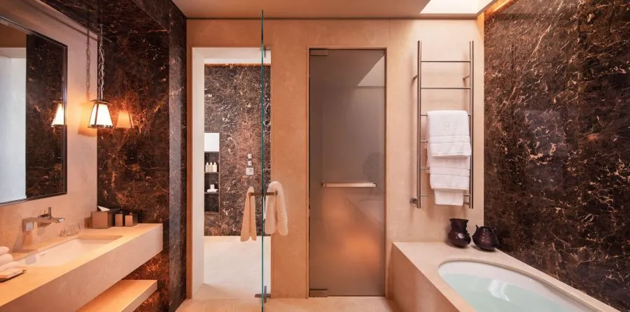 В каждом люксе есть отдельная гостиная, а также балкон или патио. Ванные комнаты укомплектованы банными принадлежностями и английской люксовой косметикой. В стоимость проживания включены услуги дворецкого.