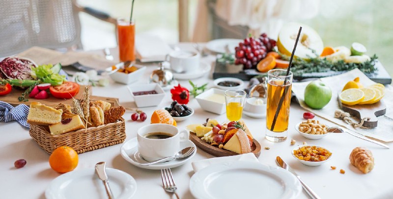 На территории загородного клуба работает четыре ресторана. Завтрак для гостей отеля в формате «шведского стола» накрывают в ресторане «Ротонда». В меню — каши, выпечка, йогурты, сезонные фрукты и овощи.