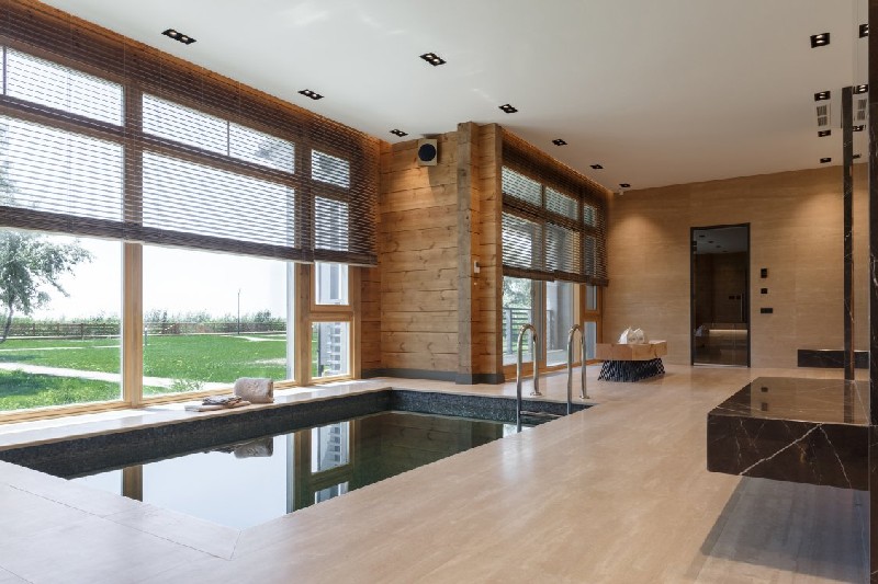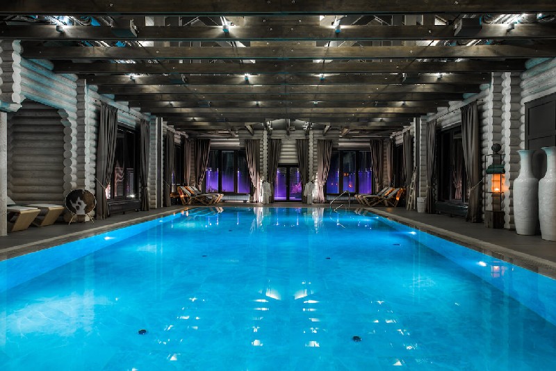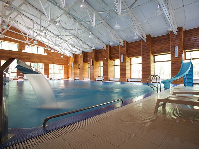 Для спокойного отдыха есть открытый подогреваемый бассейн и джакузи. А еще банный комплекс с 15-метровым крытым бассейном, соляной комнатой, ледяной купелью, инфракрасной кабиной, хамамом и двумя парными — русской и травяной.