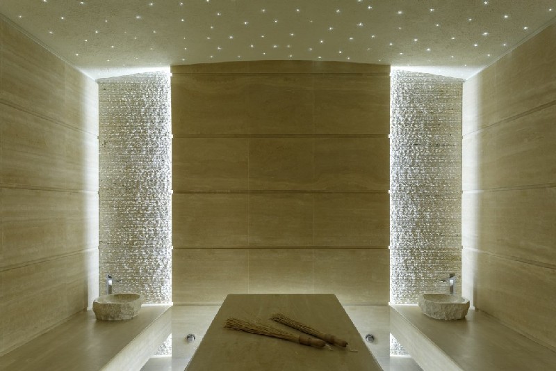 В банном комплексе оборудованы три парные — турецкая, финская и русская. Если захочется старинной русской экзотики, можно заказать баню «по-черному», которая находится в отдельно стоящем здании. Рядом с банным комплексом есть открытый подогреваемый бассейн и джакузи на свежем воздухе.