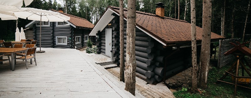 Помимо трехэтажного строения гостиницы, на территории расположены 24 коттеджа в лесу с номерами пяти категорий.