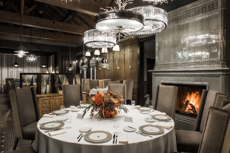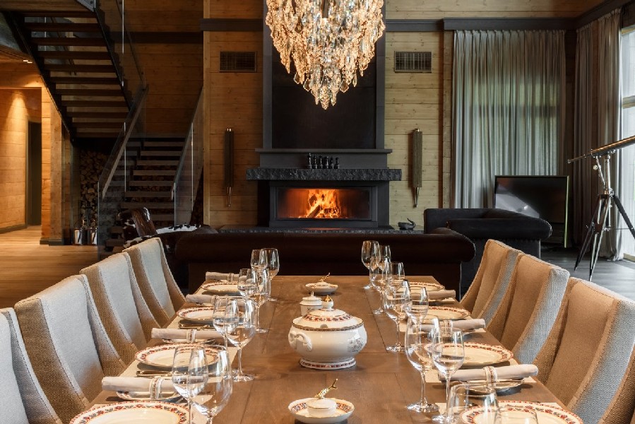 Стол накрывают на первом этаже главного дома в столовой. Напитки из винной карты «Ля Дачи» могут подать в каминный зал или спальни.