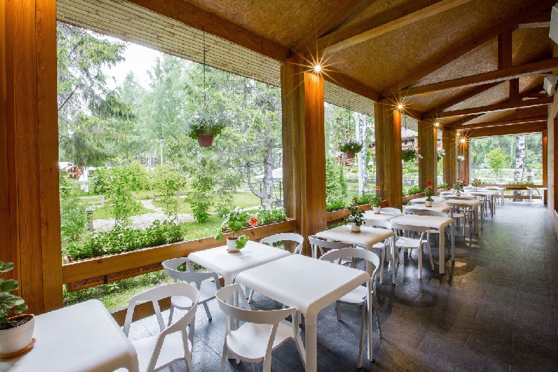 В центре загородного комплекса расположен основной ресторан «Уткино», где по утрам сервируют завтрак в формате «шведского стола» — свежая выпечка, мясо, колбасы, сыры. На обед и ужин здесь готовят авторские блюда местного шеф-повара Александра Майстренко.