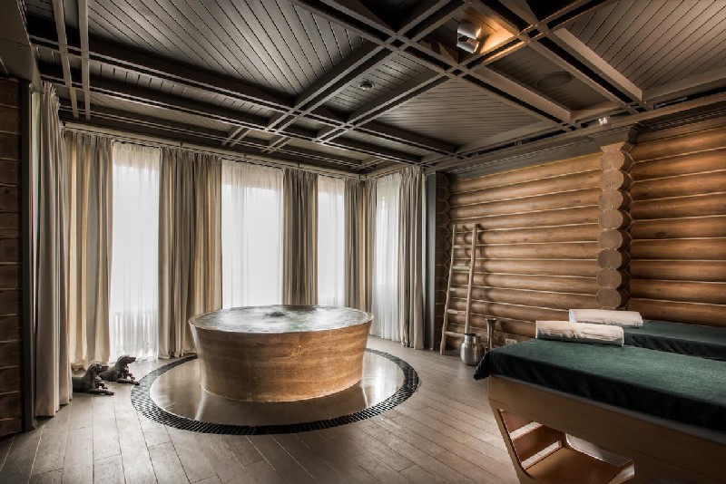В спа-центре, который находится в даче Шелепина, можно пройти процедуры массажа для тела, пилинга для лица, ароматерапии, а также расслабиться в комнате отдыха с камином.