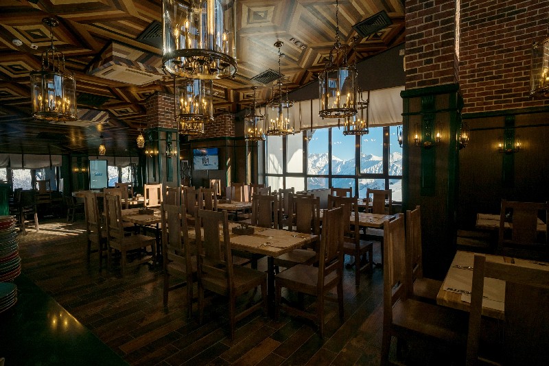 Между соседним корпусом и открытым бассейном находится мясной ресторан «Ключи», оформленный в стиле горного шале. Из панорамных окон открывается вид на горы. Ведущее место в меню занимает мясо, которое готовят на гриле, а также морепродукты.