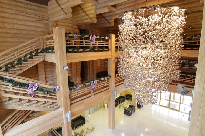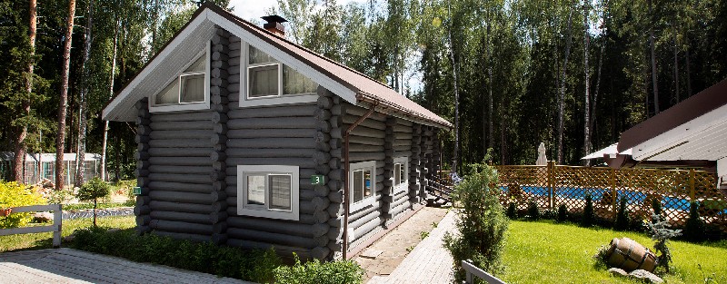 При строительстве гостиницы и коттеджей использовали натуральные материалы — северную сосну, ель, лиственницу, осину.