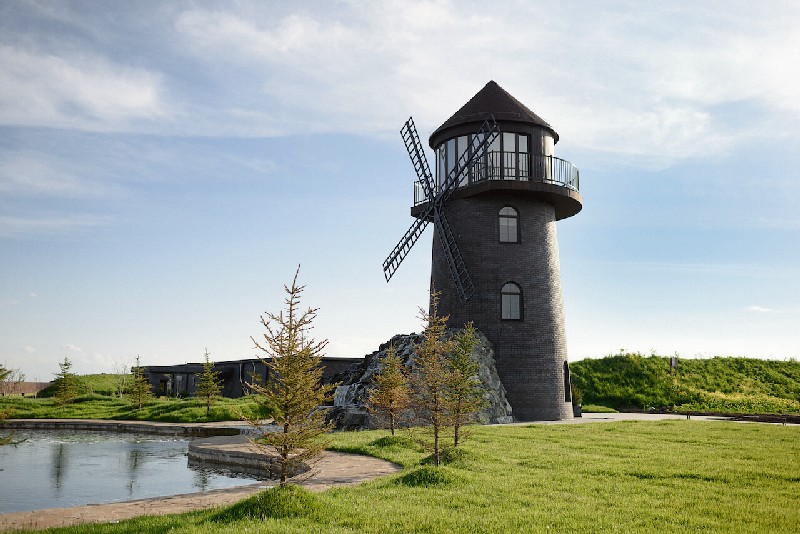 Мельница — стилизованная трехуровневая башня у пруда в отдалении от остальных построек. Внутри есть спальня, кухня, ванная комната и зона отдыха.