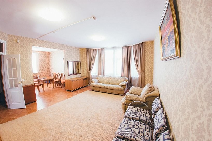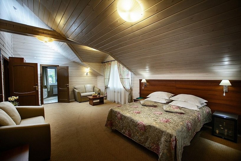 За двухместный «стандарт» заплатите 2800 ₽, «полулюкс» обойдется — 3150 ₽, «апартаменты» — 4550 ₽. Аренда коттеджа от 10 500 ₽. В стоимость проживания включен завтрак.