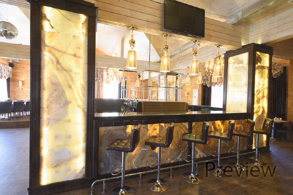 На территории отеля, на первом этаже главного корпуса, есть ресторан «Клюква». В меню европейская кухня с акцентом на байкальские продукты. Рыба, мясо, грибы, травы, ягоды — основа здешнего меню. На втором этаже ресторана по вечерам работает ночной клуб.