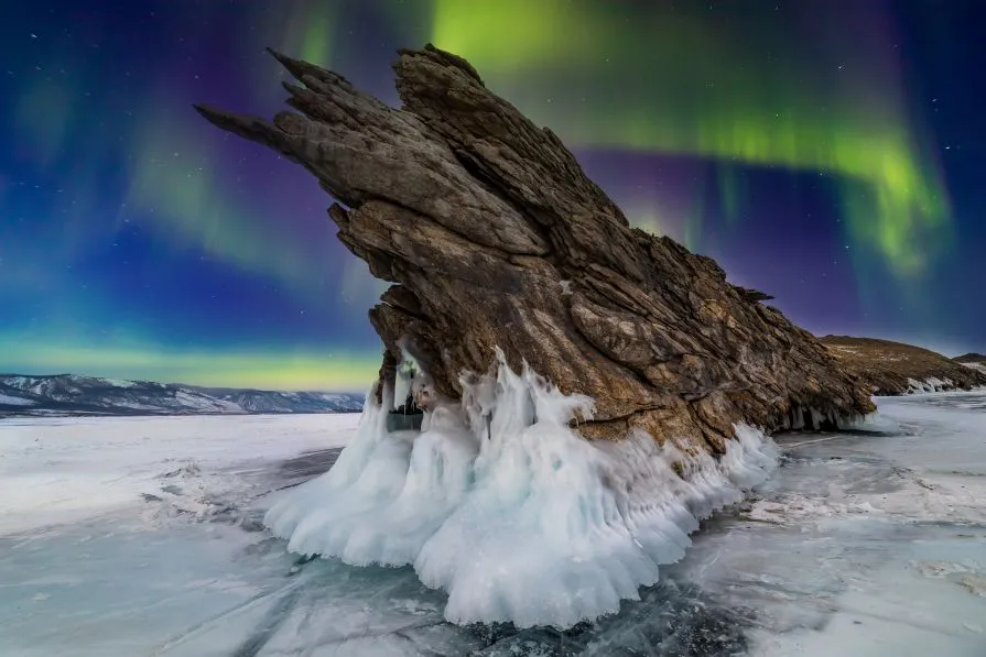 Самое фотогеничное время для посещения — зима. К концу января озеро замерзает целиком, кроме небольшого участка в истоке Ангары. На остальной территории лед достигает толщины 1,5–2 метров, поэтому путешественники безбоязненно могут брать с собой коньки и устраивать себе каток или отправиться в путешествие по льду на хивусе или автомобиле. Сибирские морозы вырисовывают трещинами узоры на льду и сказочные наплески в гротах у острова Ольхон. А вода в самом озере настолько чистая, что лед становится пронзительно голубого цвета.