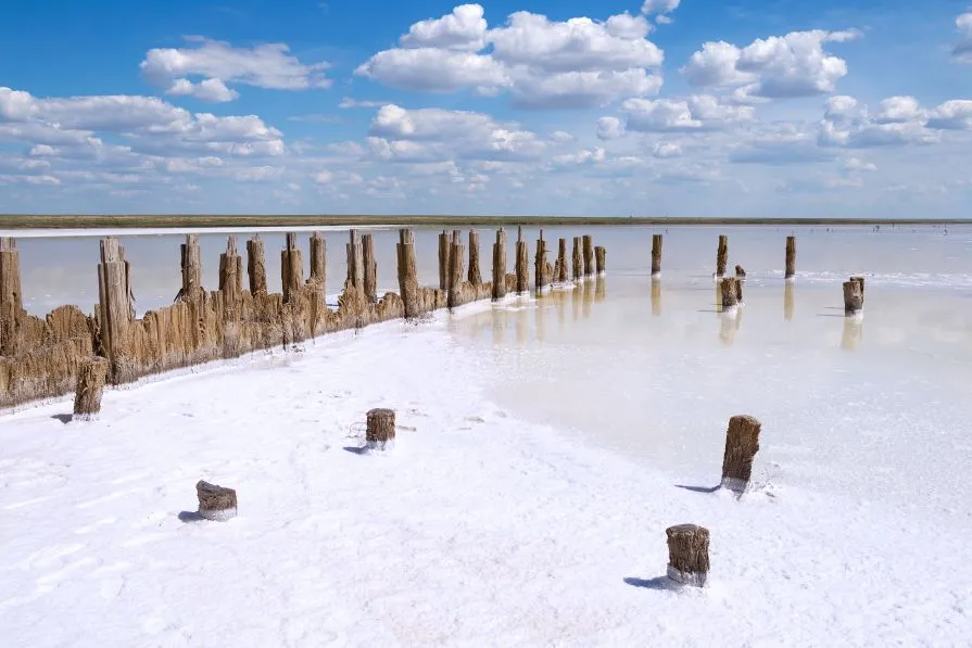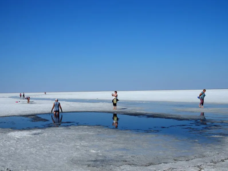Эльтон — это 152 км² водоема, или очень насыщенного солевого раствора. Глубина озера невероятно мала — летом всего 7 сантиметров, весной иногда доходит по 1,5 метров. Искупаться точно не получится, но вот если вырыть небольшую ямку, можно набрать себе что-то вроде солевой ванны.