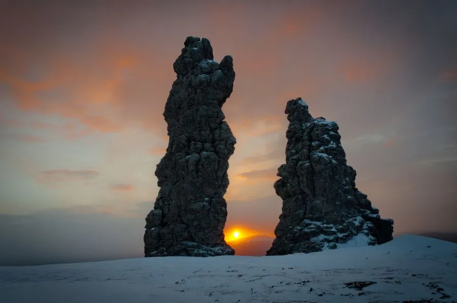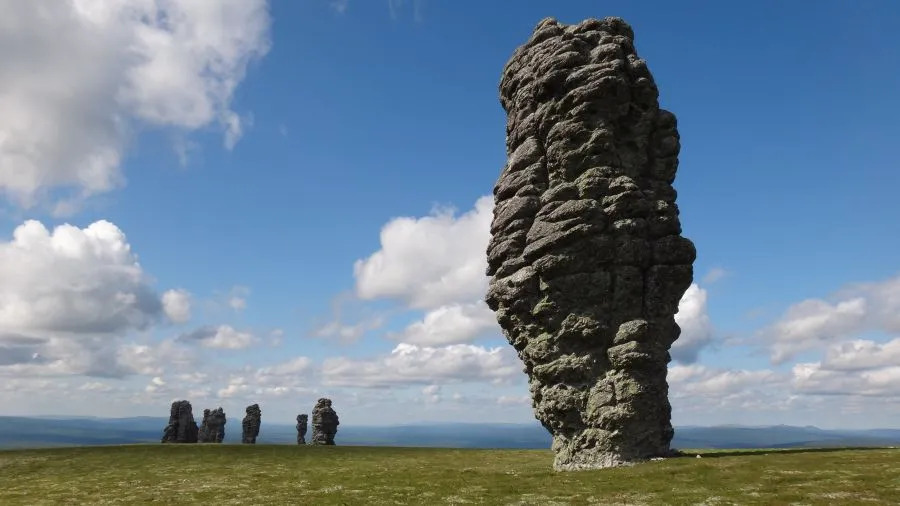 На севере Урала есть удивительное место, больше похожее на кадр из фильма про инопланетные корабли. Огромные овальные глыбы из серицито-кварцитовых сланцев высотой от 30 до 40 метров будто зависли в сантиметре над землей. Как их только не называют: великаны, столбы, болваны и даже ласково — пупы. Несмотря на свои размеры и внушительную высоту, такая горная порода выдерживает все землетрясения этого района.