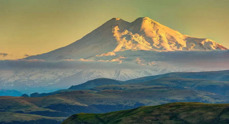 Величественная двуглавая гора по праву считается одним из самых впечатляющих мест во всей России. Эльбрус — самая высокая точка не только на территории страны, но и во всей Европе.