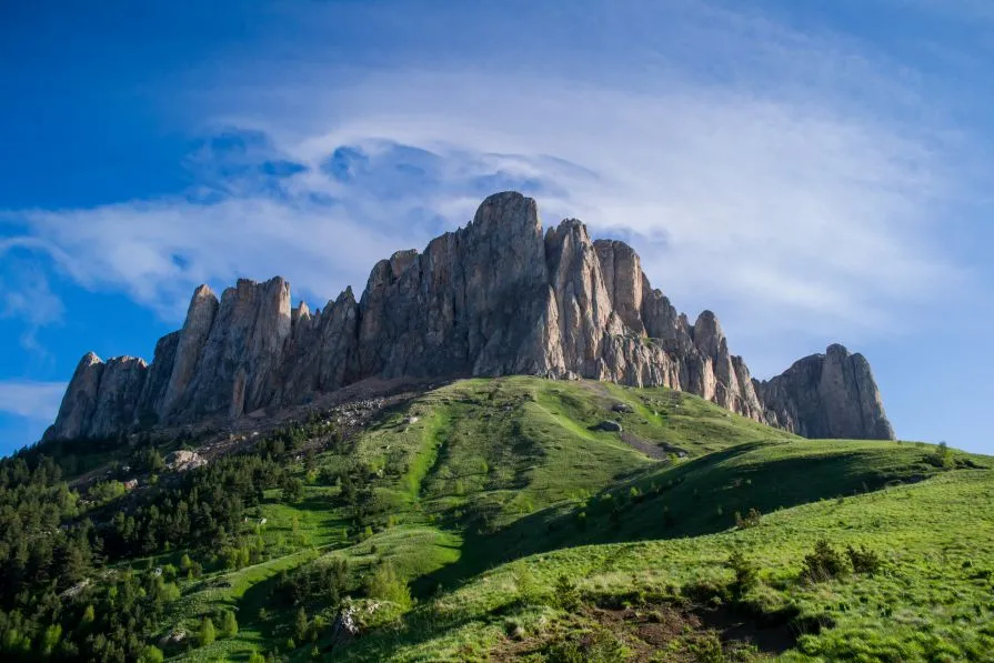 Гор на Кавказе невероятное множество, но особым шармом обладают далеко не все. Одна из самых интересных вершин юга страны — гора Большой Тхач. Известна она своей необычной формой. Это не классическая пирамида, а, скорее, прямоугольник с зубьями по периметру. Кажется, что в долине одиноко лежит огромная каменная корона.