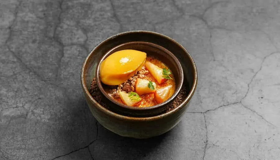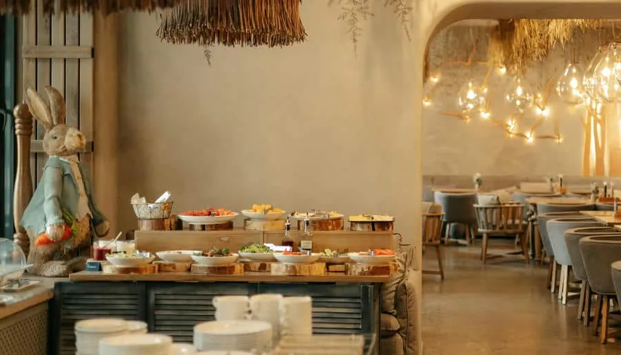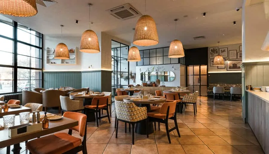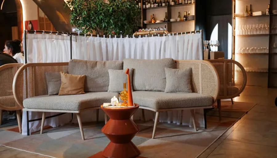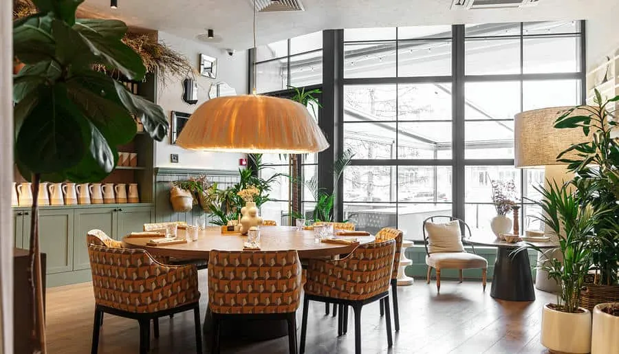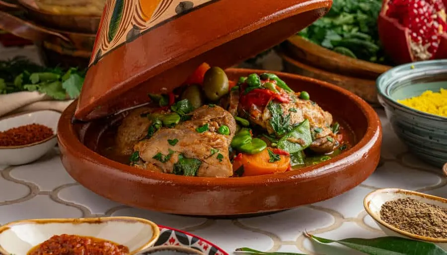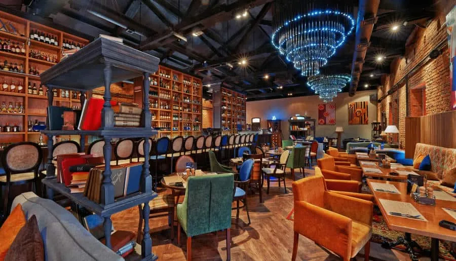 Интерьер ресторана погружает гостей в атмосферу восточного базара с яркими красками, узорной плиткой, мягкими подушками на сиденьях и живыми растениями вокруг. Повара готовят на мангале, в дровяной печи или тажине — традиционной марокканской глиняной посуде.