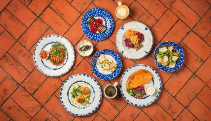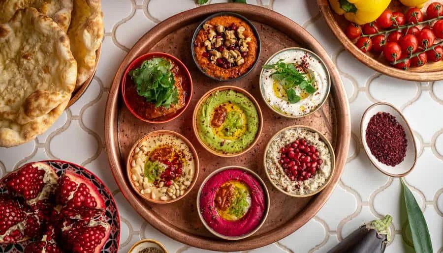 Меню предлагает традиционные блюда Израиля, Марокко, Ливии, Сирии и других ближневосточных стран. Гости могут насладиться такими блюдами, как люля-кебаб из телятины, креветки по-мароккански, каре ягненка. Особое внимание уделено свежей выпечке: пита, маца, манакиш и другие лепешки готовятся в дровяной печи. Десертное меню включает восточные сладости, такие как пахлава и фисташковый рулет с малиной.