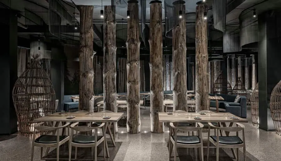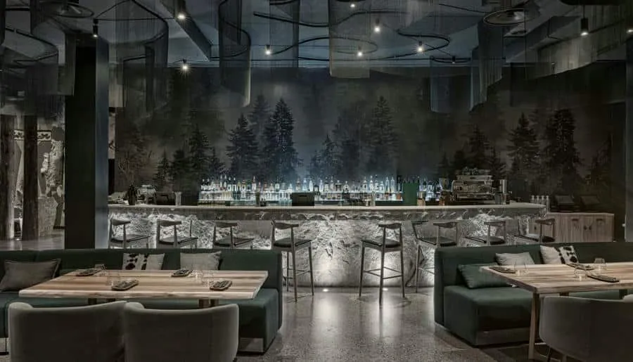 Интерьер ресторана вдохновлен природой края: зеркальные вставки создают иллюзию бесконечного леса, закругленные линии диванов напоминают изгибы таежных рек, а потолок создает эффект северного сияния. Барная стойка и открытая кухня отделаны натуральным камнем, привезенным с отрогов Саян. Вход в ресторан оформлен в виде традиционного жилища северных народов — чума, украшенного шкурами оленя. Интерьер ресторана получил признание на международной арене, войдя в шорт-лист премии Restaurant & Bar Design Awards в Лондоне.