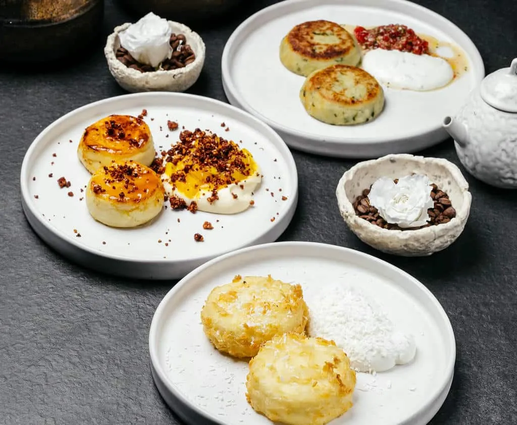 Меню ресторана предлагает разнообразные блюда: пхали из лесных грибов с кедровыми орехами, хинкали с креветками, паштет из утки с вареньем из фейхоа и желтым ткемали, чебурек с лесными грибами и сулугуни, уху на чаче с неркой и муксуном.