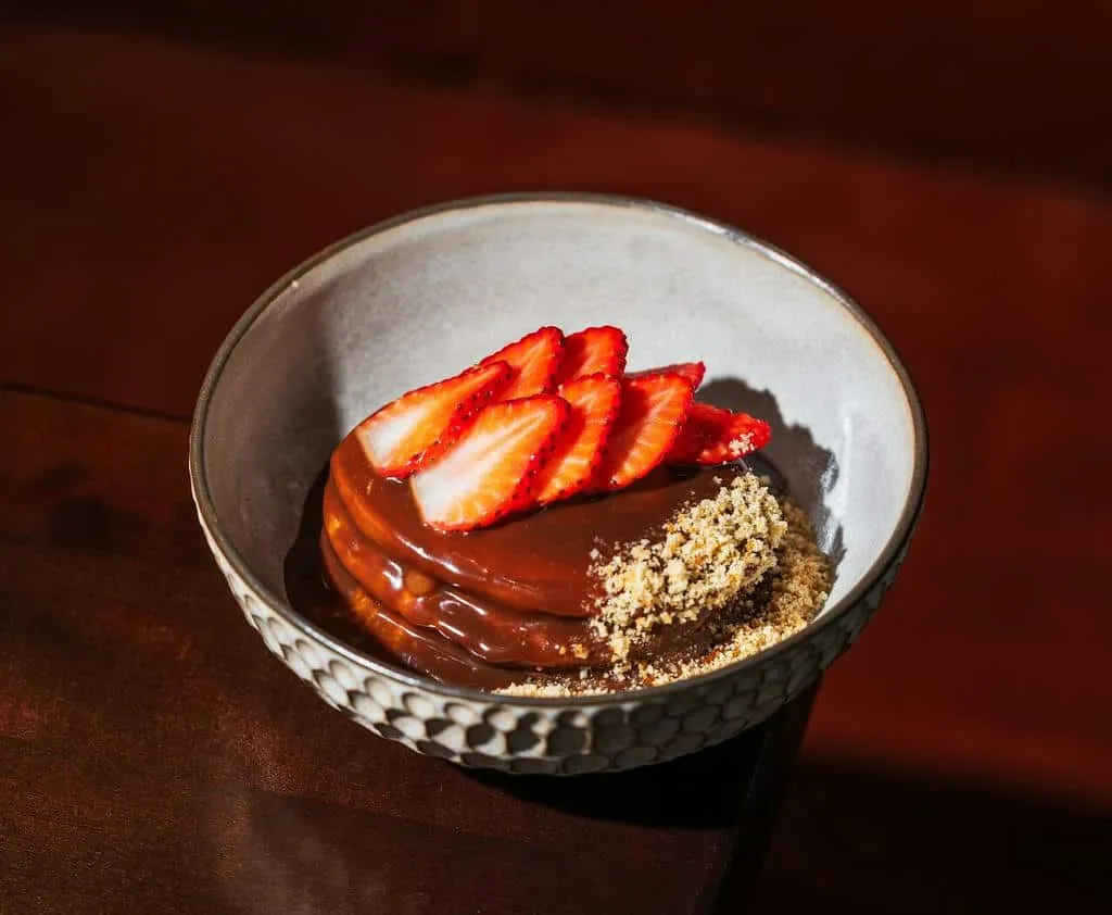 В меню можно найти такие интересные блюда как тартар из косули с тертой юколой лося, трюфельной эмульсией и кремом из урбеча, утиную грудку с тыквенными оладьями, мармеладом из облепихи и апельсиновым жу, а также мусс из домашней сгущёнки с сорбетом из протертой черники и сибирскими ягодами.