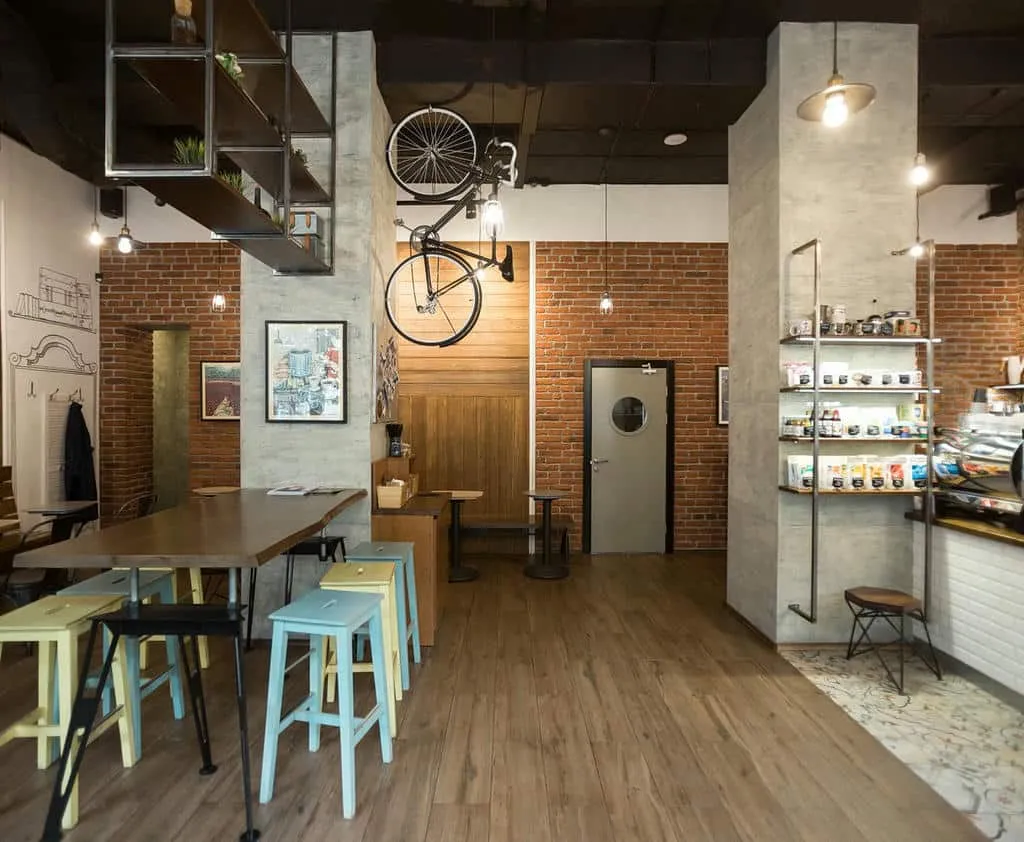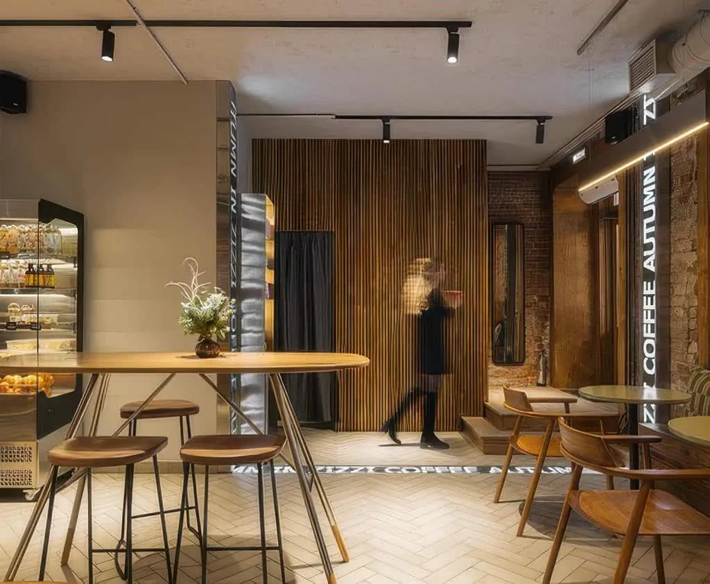 Интерьер выполнен в стиле современной Италии с элементами индустриального лофта: кирпичные стены, открытые коммуникации, деревянные столы и уютное освещение создают атмосферу миланской траттории.