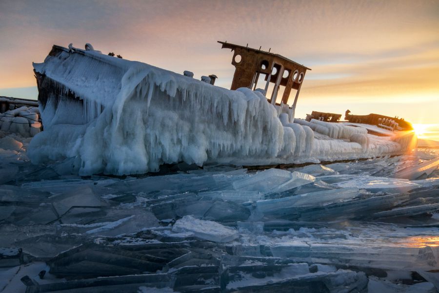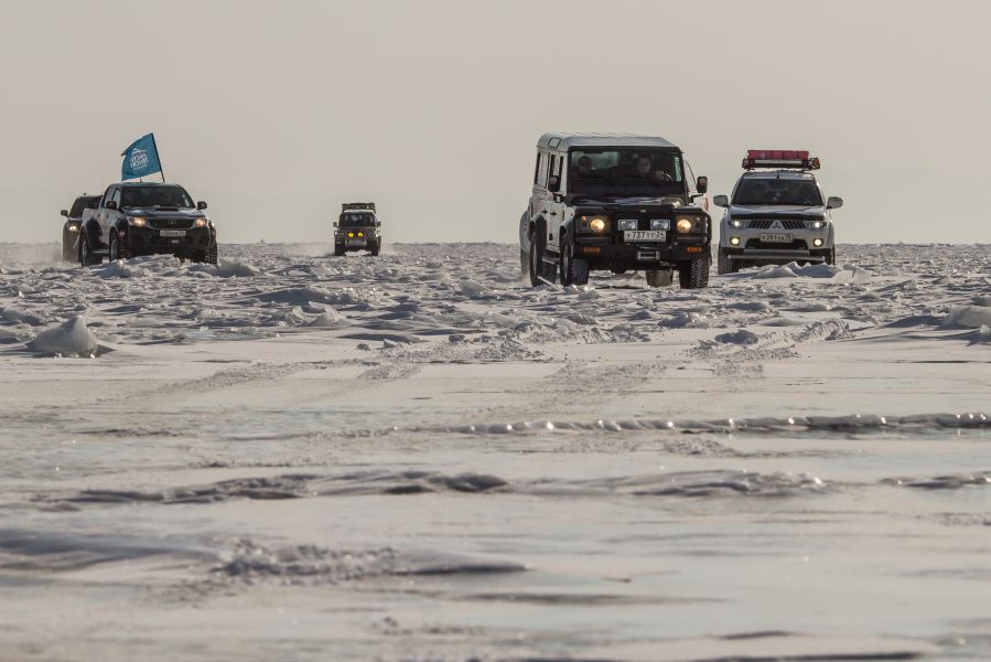 Если посмотреть на снимки Байкала с космоса, то можно увидеть огромные темные кольца в 7 километров. Ученые гадают, в чем причина явления, предполагая, что на дне озера есть газовые вулканы. Теплый газ, поднимаясь к поверхности водоема может образовывать подводный циклон, создавая круги. Зимой, в тех местах где замечены окружности лед заполнен микротрещинами и считается менее крепким, чем на других участках. Так передвижение по льду Байкала в нашем зимнем туре является неотъемлемой частью приключения. Наша команда перед каждым заездом делает замеры льда и инспектирует трещины, выбирая безопасный путь.