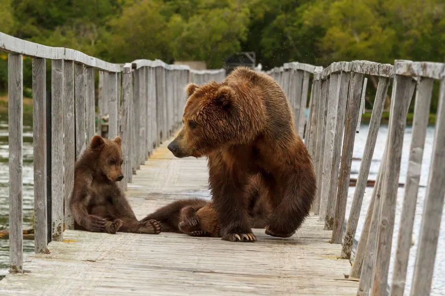 Медведи — главная фишка этого места. 250 бурых медведей лакомятся неркой в озере в середине лета, когда около шести миллионов особей заходят на нерест. Это крупнейшая нерестовая миграция Евразии. С середины июля рыба начинает подниматься из Охотского моря по реке Озерной, единственной вытекающей из Курильского озера. На истоке реки работает стационар научно-исследовательского института рыбного хозяйства и океанографии.
