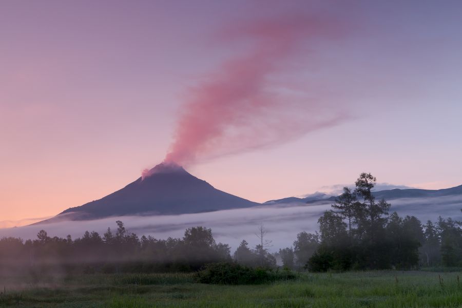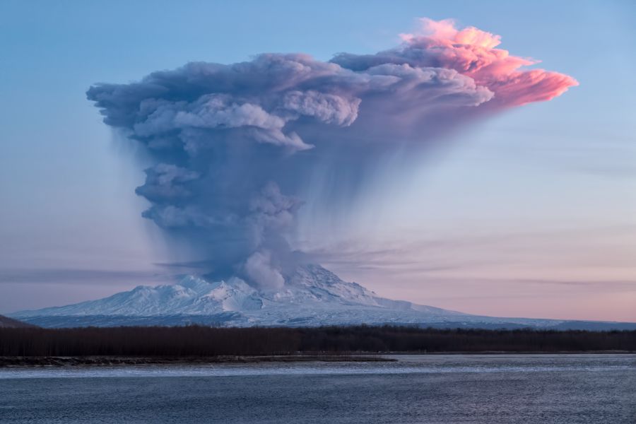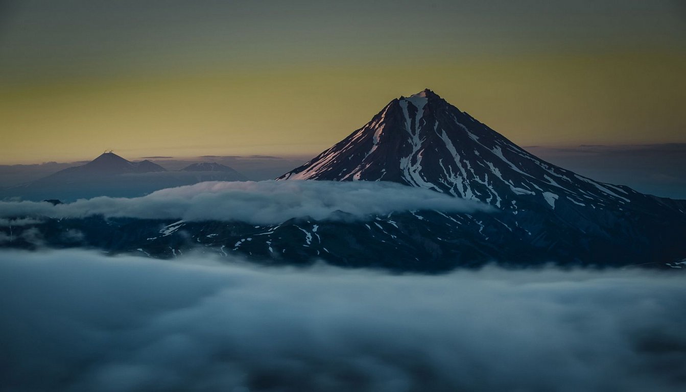 Шивелуч или, как его называют коренные народы, «курящаяся гора», высотой 3283 метра. Выбросы пепла здесь происходят дважды за год и достигают 7 километров.