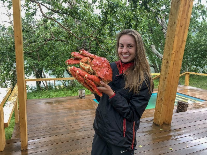 Главный продукт края — краб — камчатский и стригун. Мясо невероятно полезное, богатое витаминами и микроэлементами, считается диетическим. Продают в вареном виде и в консервах, в целом и разделанном варианте. В ресторанах можно заказать различные варианты салатов из краба, крабовый жульен с апельсинами, супы, бургеры и брускетты с крабовым мясом, запеченного краба с сыром и овощами гриль.