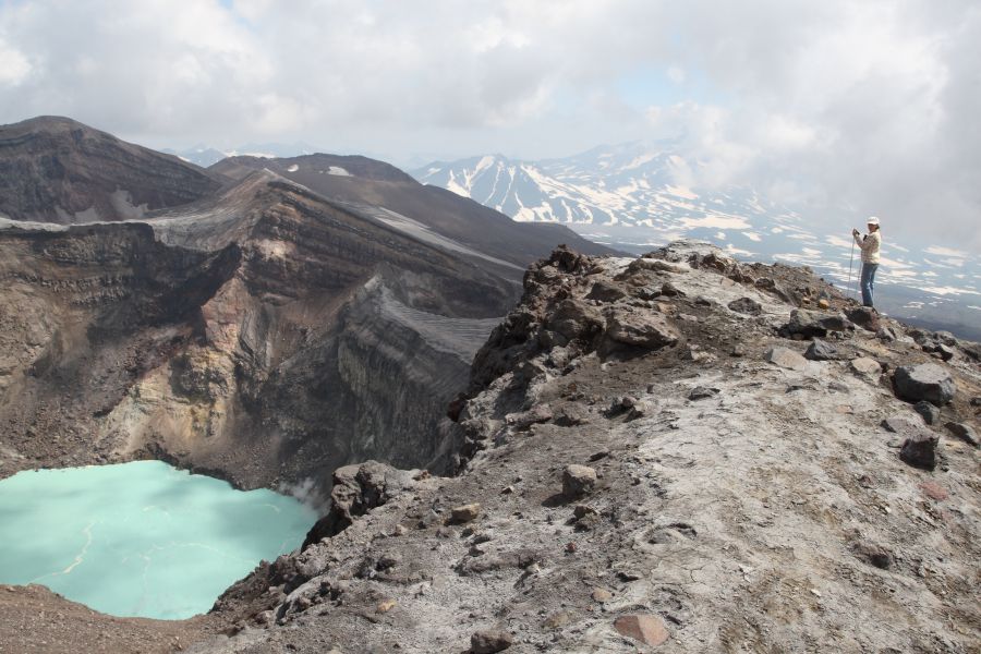 Вулкан, в кальдере которого два озера: Ключевое и Штюбеля. Вдоль кромки берега Ключевого озера бьют горячие источники, образуя горячий пляж. С помощью рук и лопаты в песке можно соорудить небольшой бассейн. Термальная вода источника смешается с холодной водой озера и охладится до комфортных +35 °C. После этого можно искупаться.