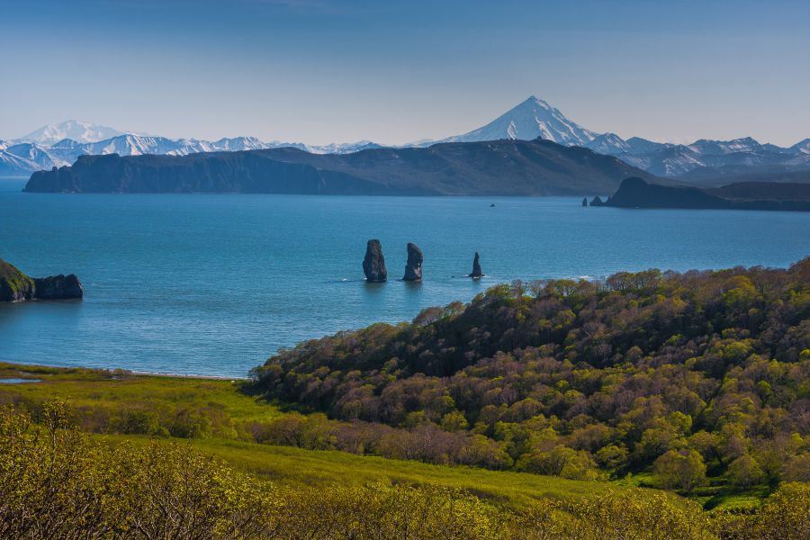 - Осмотр и фотографирование скал Три брата — символа Камчатки. По местной легенде, они защищают полуостров от цунами.