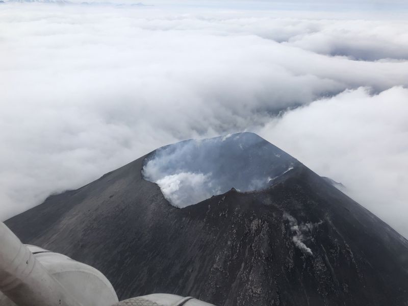 Последнее извержение произошло 17 марта 2019 года, вулкан выбросил в воздух столб дыма высотой в 4 километра. Даже сейчас ночью можно отчетливо разглядеть как по склонам катятся раскаленные камни.