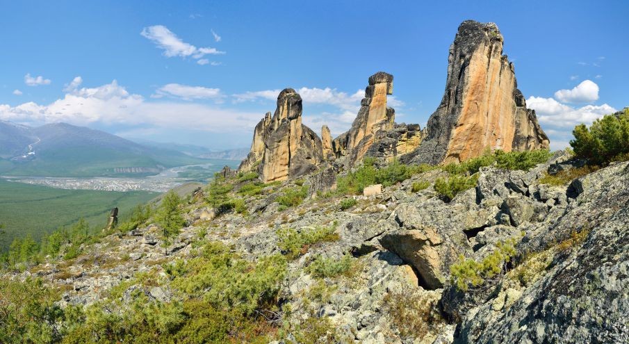 Одной из визитных карточек Якутии являются Ленские столбы. С 1995 года месту присвоен статус национального заповедника. Природное сооружение, находящееся в 200 километрах от Якутска, входит в список объектов Всемирного наследия ЮНЕСКО. Поражающие воображение скалы протянулись вдоль берега реки Лена на 50 километров. Их высота местами достигает 100 метров. Чтобы добраться сюда летом, необходимо будет преодолеть 100 километров на автомобиле до села Бестях, где находится одна из трех баз отдыха. Далее на катере переправиться через реку — окажетесь у подножия этого чуда природы. Зимой нужно будет доехать до села Улахан-Ан, преодолев 142 километра и по зимней дороге через замерзшую реку добраться прямо до парка.