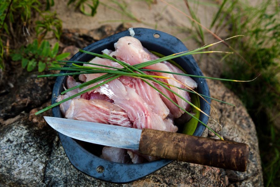 Самая популярная еда в здешних местах — строганина. Тонко нарезанные пласты замороженного мяса или рыбы, окунают в смесь соли и перца. В основном это жеребятина, омуль, чир, муксун и нельма. Успех в приготовлении блюда кроется в толщине стружки. Чем тоньше и невесомей — тем вкуснее.