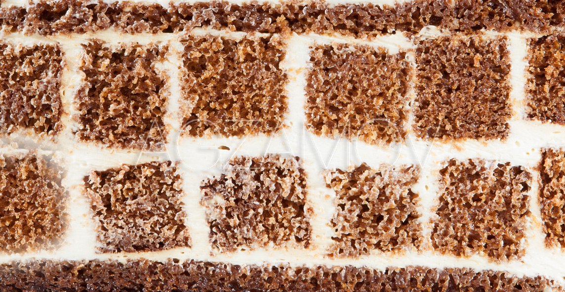 All cakes are prepared according to the technology of "Brickwork" — the biscuit is cut into cubes, each of which is separately lowered into the cream, and then glued in a staggered manner. This method allows you to evenly soak dessert cream. All cakes are covered with chocolate velvet velour. A thin layer of powdered chocolate (1.5–2 mm) is easily cut with a knife.
